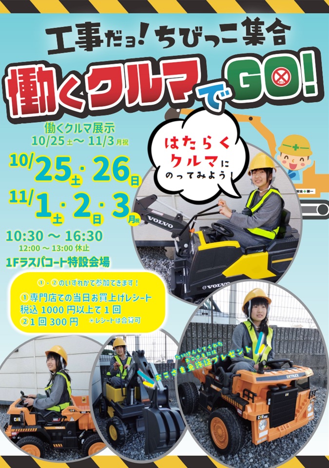 10/25~1/3まで働くクルマの展示もしてるよ!