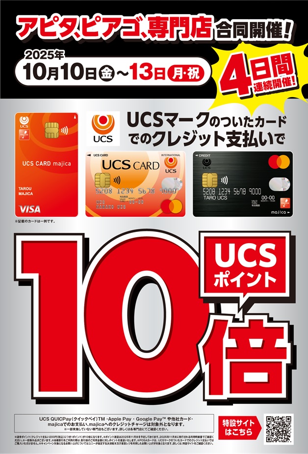 ※UCS QUICPay(クイックペイ)TM・Apple pay・Google payや他社カード・majicaでのお支払い、majicaへのクレジットチャージは対象外となります。