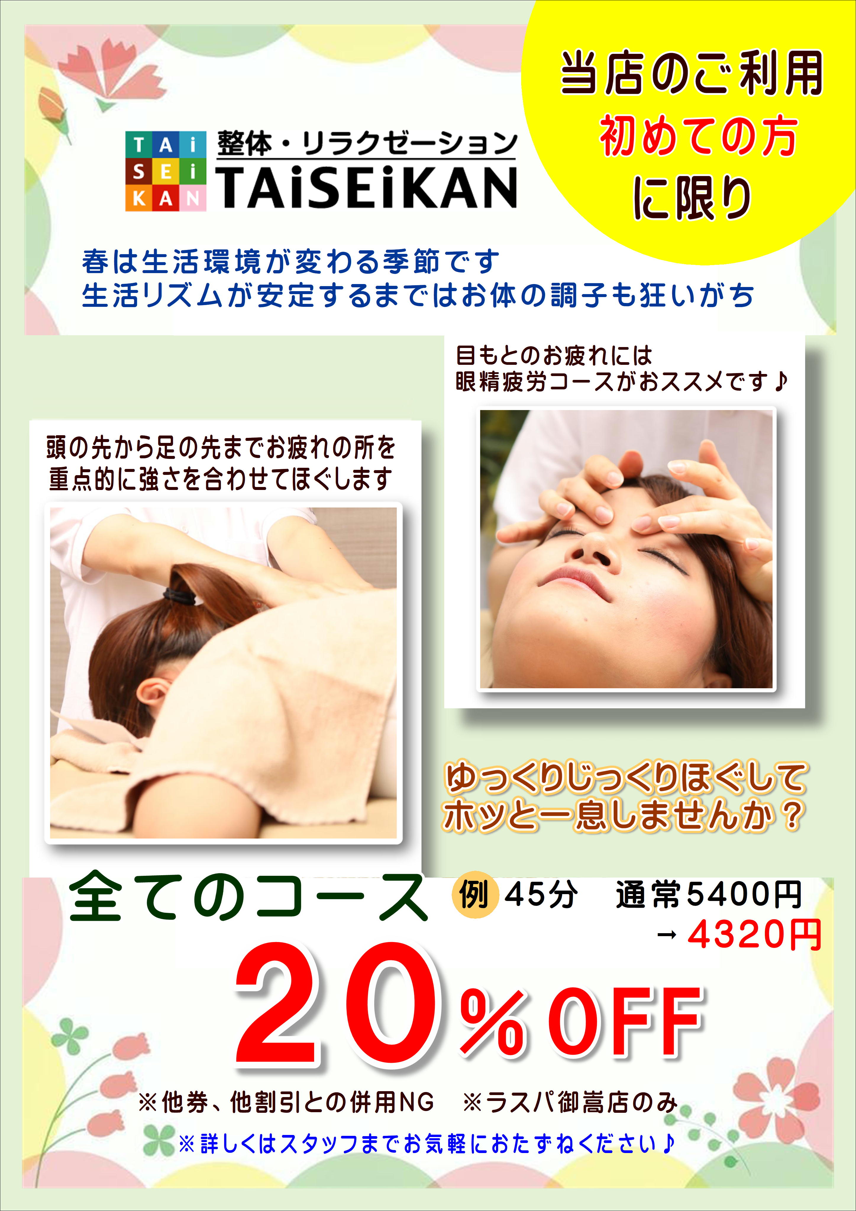 ご新規様に限り全コース20%OFF